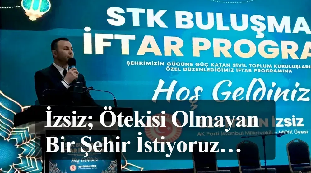 Anahtar Kelimeler: Seyithan İzsiz Esenyurt iftar programında ne söyledi, Seyithan İzsiz kimdir ve nerede konuştu, Esenyurt STK buluşması detayları neler, Halis Kahriman kimdir ve ne mesaj verdi, Nezir Karayün Esenyurt haberi,